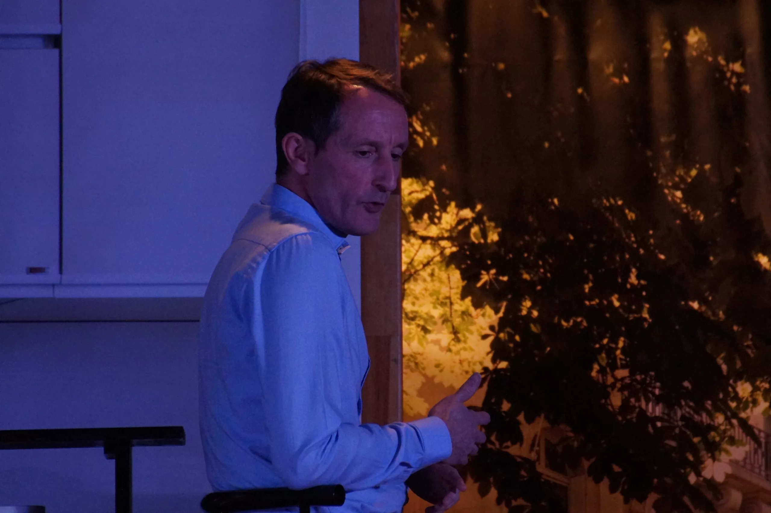 Nathalie et Alain s’apprêtent à sortir pour aller fêter l’anniversaire de ce dernier au restaurant. Après un début de soirée plutôt mouvementé, les voilà enfin sur le départ. C’est sans compter sur l’intrusion, pour le moins loufoque et musclée, du commissaire Galois et de l’inspecteur Letallec. Un vol d’œuvre d’art a eu lieu au Mont de Piété et ils possèdent certains renseignements leur faisant penser que le coupable se cache dans l’appartement d’en face. Une seule solution pour le confondre : effectuer une étroite surveillance de chez Alain et Nathalie.